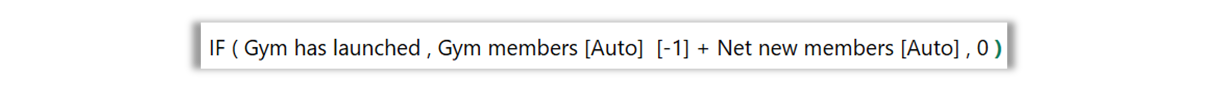 The number in brackets refers to the number of periods relative to the current period from which a Variable should take the referenced value. In the example above, this calculation takes the previous period's value of Gym members.