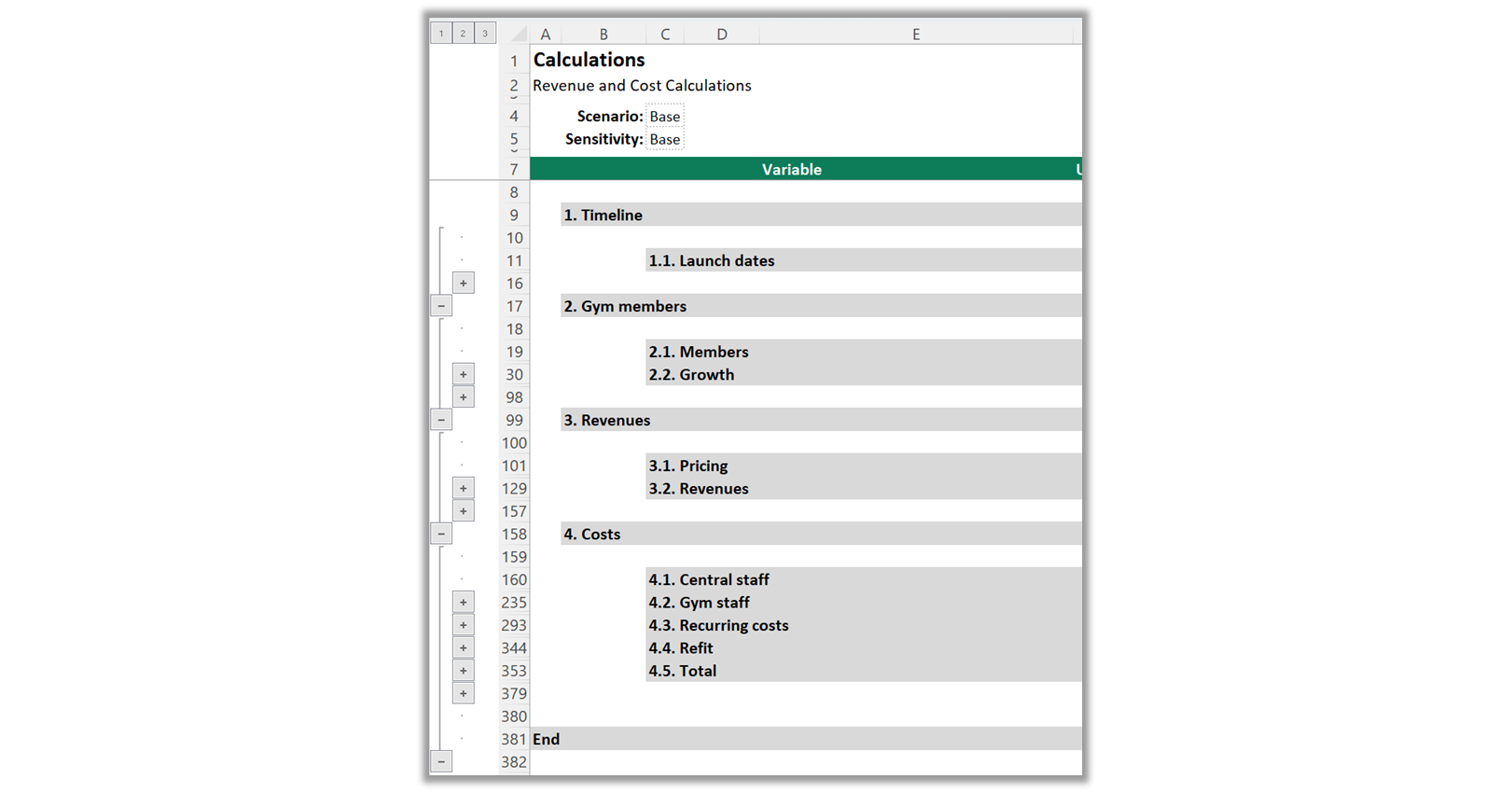 Use grouping on large or complex Sheets to help speed up navigation of the Excel.