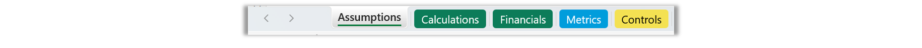 <table><thead><tr><th width="235">Sheet type</th><th>Details</th></tr></thead><tbody><tr><td><code>Assumptions</code></td><td>Contains <a href="../assumptions"><strong>Assumptions</strong></a>. All inputs to the Model will be editable from an Assumptions sheet, unless they are linked to a <a href="../dashboards"><strong>Dashboard</strong></a> or <a href="../excel-inserts-and-outputs"><strong>Excel Insert</strong></a>.</td></tr><tr><td><code>Calculations</code></td><td>Contains <a href="../variables"><strong>Variables</strong></a>. </td></tr><tr><td><code>Metrics</code></td><td>Contains <a href="../metrics"><strong>Metrics</strong></a>.</td></tr><tr><td><code>Dashboard</code></td><td>Contains a <a href="../dashboards"><strong>Dashboard</strong></a>. Each Dashboard sheet can only display one Dashboard.</td></tr><tr><td><code>Excel Insert</code></td><td>Copy of a pre-built sheet from another spreadsheet (e.g. a cover sheet). Read more about Excel Inserts <a href="../excel-inserts-and-outputs"><strong>here</strong></a>.</td></tr></tbody></table>